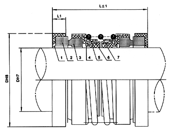 1、靜環墊 2、靜環 3、動環 4、波紋管 5、傳動套 6、緊圈 7、彈簧